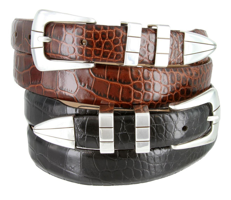 • Detailed of Alligator, Lizard embossing, or smooth leather belt. Designed and assembled in the U.S.